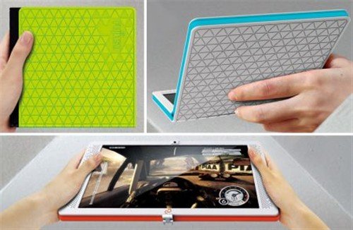 在未来电脑设计比赛中,这款笔记本设计从上千份作品中脱颖而出。这款笔记本电脑的屏幕和键盘都采用了折叠设计,不使用的时候可以像纸一样叠成几折。