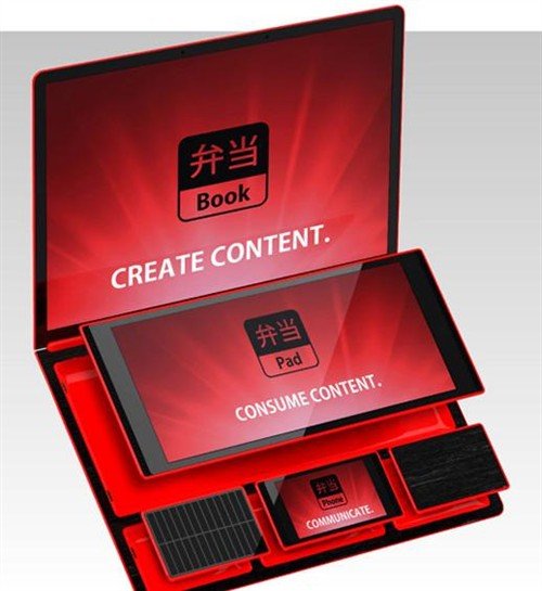 这个叫便当盒的笔记本是一个超前的概念设计,它几乎可以装载所有电子产品的功能。就如它的名字便当盒,它由几个可以拆分的部分组成,每个部分都可以拆分下来作为单独的电子产品使用。
