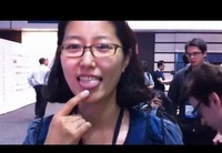 事情是这样的,当时我在E3展馆里四处晃荡,到处都是充斥着任天堂和索尼的广告和游戏。这时,我发现已经走到Indiecade的展厅,就在那时候我碰到了惠妍南(Hye Yeon Nam)。热情的介绍后,她在我的舌头上粘上了一枚感应器,而这时候,我发现她的舌头上也有一枚。如果说我不担心会把这颗小东西吞下肚子的话,后面的画面我已经开始想入非非了。。。这不是最美好的前奏吗?
