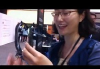 我们的误会是暂时的,不过我还是有点不太适应这个舌吻控制器。这个机器的控制原理很简单,两枚磁铁感应器在舌头上,双方都戴上一个类似于耳机的感应装置,舌吻起来,装置就会感应到双方舌头的动作,进而控制游戏。在展台上演示的一个保龄球游戏,不过我想重点应该都不会在保龄球上。是不是听起来很神奇的仪器?我认为这可以作为一个前瞻性的课题来好好研究和实践一下。