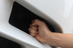 引擎盖呈现出微微突出、拱起的趋势。在拱形两侧的地方设计有两个同为蜂窝网状的出风口,这是为4.0L V8发动机专属打造的散热区,通过特殊处理,直接与发动机相连,让需要更多空气的发动机呼吸得非常顺畅。