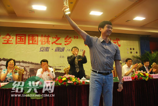 本网讯 (手机记者 郑天祥 俞益军)6月17至18日,嵊州市以围棋之乡的名义组团参加了在安徽省宣城市举行的“全国围棋之乡”授牌仪式暨首届“天元投资杯”全国围棋之乡围棋友谊赛。这次活动新授予了浙江的衢州市、安徽的宣城市、江西的丰城市、新疆的沙雅县等四个县市为“全国围棋之乡”,随后新老全国围棋之乡进行了友谊赛,嵊州市代表团获得该次比赛团体第一名和个人第一名,围棋棋圣聂卫平为嵊州队颁了奖,在颁奖递交奖杯时盛赞嵊州不愧是马晓春的故乡。