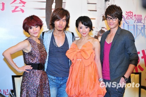 资料图:2010年7月15日,人气偶像剧《就想爱着你》在北京召开记者会。主演言承旭、SHE成员Ella、陈紫函和张勋杰悉数到场。剧中,Ella饰演的落魄富家女在阴差阳错之后,来到由言承旭饰演的大律师家中当保姆,两人在经历了一连串的考验之后喜结良缘,上演了一出精彩的爱情对手戏。同时,二人在戏中大量的吻戏也成为一大看点。