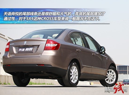 外观方面,尚悦是天语SX4三厢版车型,与个性的两厢版车型相比,尚悦由于有了尾箱使得整体线条更为圆润,性格更加平和,而且也比两厢车型显得要稳重一些。