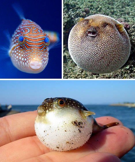 当河豚希望将自己的身体膨胀变大时,就会吞入大量的海水。除河豚之外,一些动物在膨胀时能够将脊椎直立起来。当河豚身体变膨胀时,看上去非常一个带刺的篮球,但是它们却无法抵御鲨鱼等掠食者的攻击。