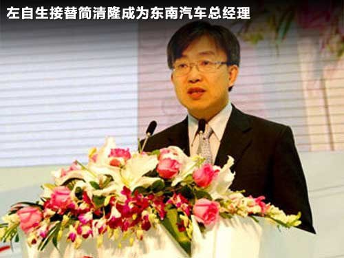 由于总经理简清隆任期届满,从2011年1月1日起,来自台湾中华汽车的左自生将出任东南汽车的新任总经理。据介绍,接替简清隆的左自生,同样来自台湾中华汽车,具备丰富的产业运营经验及完整的技术背景。有消息称,左自生是中华汽车的前协理,之前曾是技术部门的主管,这次到东南汽车属于退休之后的返聘。