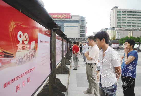昨日,由中共嵊州市委举办,市委宣传部、市委党史研究室、市档案局(馆)共同承办的“嵊州市庆祝中国共产党成立90周年图片展”在文化广场展出。盛秋平、阮建尧、朱钦苗、王生灿、马志龙等市领导在参加全市庆祝中国共产党成立90周年大会后观看了图片展。