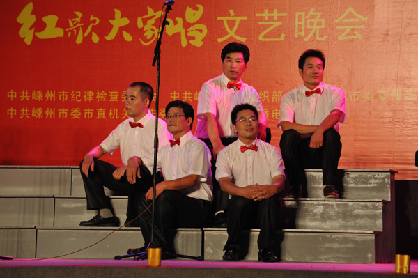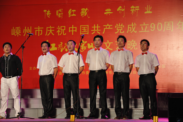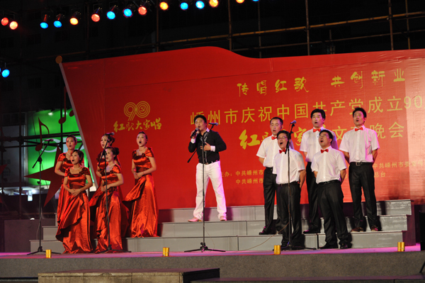 6月28日晚上,由市纪委、市委组织部、市委宣传部、机关党工委和广电总台主办的庆祝中国共产党成立90周年“红歌大家唱”文艺晚会在文化广场举行。市委书记盛秋平,市委常委、宣传部长何国英,市委常委、纪委书记董慧珍观看晚会,并向“红歌大家唱”比赛活动获奖单位和个人颁奖(中心《映山红》获组合唱金奖,吴燕钧《红旗飘飘》获独唱银奖)。晚会上,红旗飘扬,红歌嘹亮,演出人员以大合唱、歌舞、音乐剧、组唱、独唱等形式,把一曲曲激情红歌献给中国共产党的90岁生日。