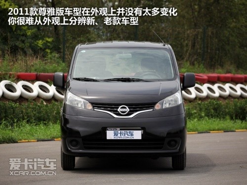 此次试驾的NV200是2011款尊雅版车型,2011款车型只是在2010款的基础上增加了三款配置小幅升级的车型,分别为尊雅版223座位形式和232座位形式两款以及一款顶配的尊贵版车型。