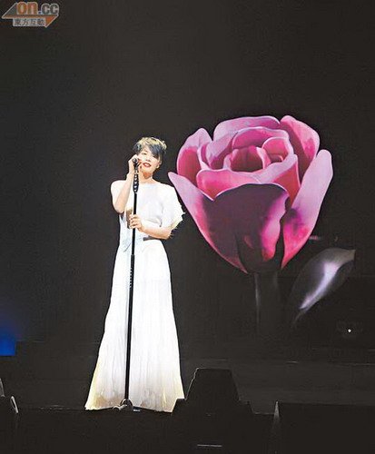 染了一头黑发的王菲,化了清淡妆容衬飘逸白裙冷艳登场,全晚的战衣都是黑、白两色,型格十足,她还换了五首新歌,为观众带来惊喜,但却不改惜字如金的作风,全晚只说了五句“谢谢”,当她演绎《我愿意》时,天籁歌声令不少观众掉眼泪。