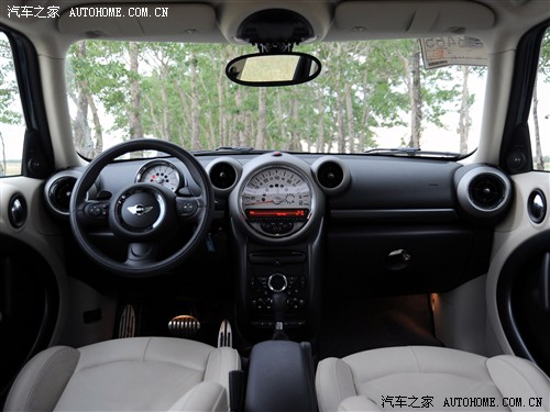 MINI家族的产品一直是以圆形作为主要设计元素,在内饰方面也依然采用这种设计方式,白底圆形的分体式仪表盘和飞机引擎似的出风口看上去非常醒目。另外,中控面板上拨杆式功能控制却显得是如此经典。MINI系列的内饰用料都非常讲究,皮质包裹加上传统的装配造就了厚重感十足的内饰。
