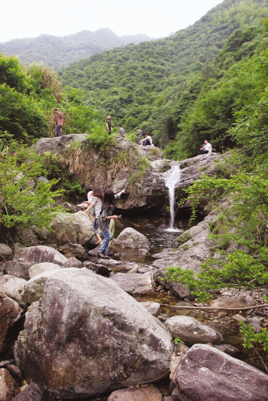嵊州市下王镇注重对生态环境的保护,让当地真山真水原生态的高山峡谷,成为游客向往的地方。一位游客称,这样的生态峡谷是天然氧吧,难得享受。图为昨日,游客正在下王镇十八都江源头游玩的现场。 【来源:天天商报】