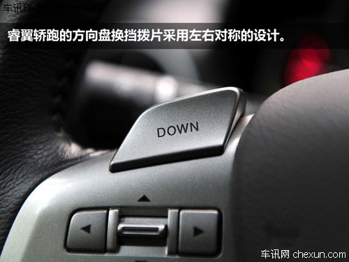 作为主打运动性能的车型,方向盘换挡拨片是必不可少的装备,不过睿翼轿跑的方向盘换挡拨片采用左右对称的设计,两边都能加减档,这跟常规的使用习惯出入较大,需要时间适应。