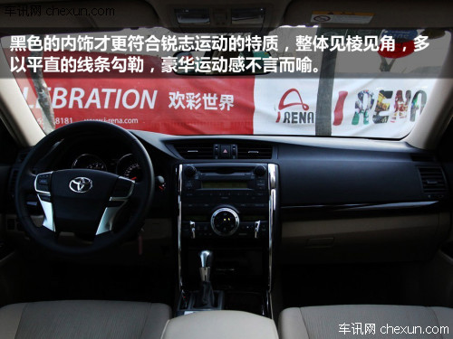 锐志提供了两种颜色的内饰配色,说实在的,黑色的内饰才更符合锐志运动的特质,并且硬朗的外形风格延续到了车内,整体见棱见角,多以平直的线条勾勒,豪华运动感不言而喻。中控面板同样采用了较多的直线条设计,造型规整。虽然面板上的按键数量较多,不过标识一目了然,上手基本没有难度,按键阻尼感不够,按起来缺乏韧性。