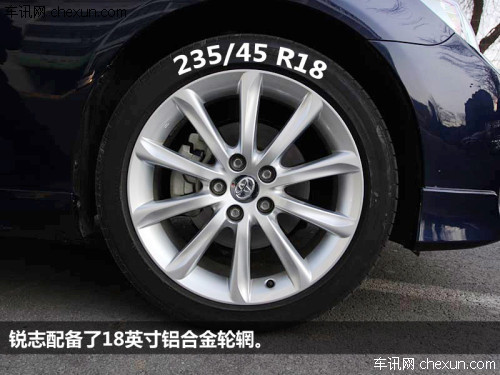 锐志采用了18寸的大轮毂,十分符合其运动型车的定位,245/45 R18的轮胎尺寸也极具视觉冲击力,在中型车里只有君威的那双“大脚”能与其抗衡。