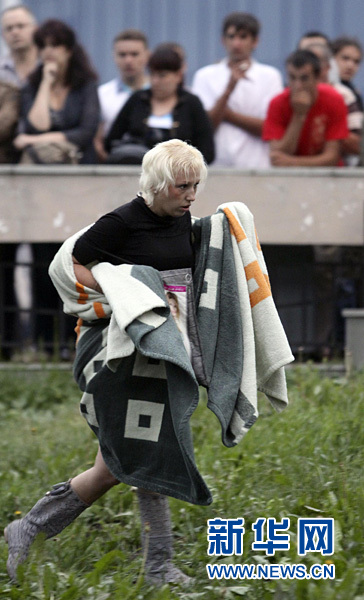 7月10日,在俄罗斯喀山,沉船事故中的一名幸存者获救后裹着毛毯上岸。俄罗斯紧急情况部10日夜发布消息说,在俄伏尔加河发生的沉船事故造成的死亡人数上升到2人,失踪人数增加到103人,已有80人获救。新华社/路透