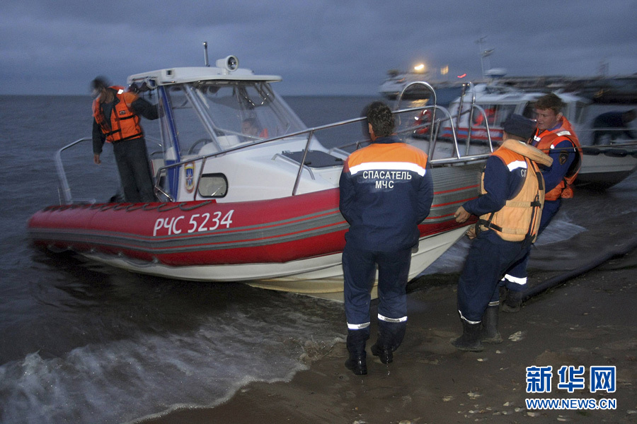 7月10日,在俄罗斯伏尔加河边,俄紧急情况部工作人员展开沉船事故中失踪人员的搜救工作。俄罗斯紧急情况部10日夜发布消息说,在俄伏尔加河发生的沉船事故造成的死亡人数上升到2人,失踪人数增加到103人,已有80人获救。新华社/路透