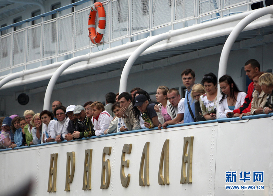 7月10日,在俄罗斯喀山,沉船事故中的幸存者获救后被转移至另一艘船上。俄罗斯紧急情况部10日夜发布消息说,在俄伏尔加河发生的沉船事故造成的死亡人数上升到2人,失踪人数增加到103人,已有80人获救。新华社/路透