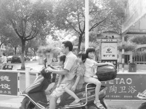 一辆助力电动车乘坐着4个人,没有一个人戴头盔,这样的一幕是记者7月7日下午3点在嵊州市区官河路摄下的镜头。为了孩子的生命安全,请成年人多一点安全常识。【来源:天天商报】