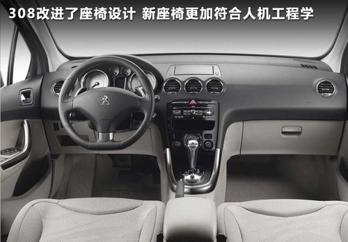 小改款标致308将车辆内部的改进集中在提升质感方面。为了实现这一目标,新车改进了座椅设计,新座椅更加符合人机工程学。同时,车辆内饰采用了高品质的材料。选装件方面,新308包括了全景天窗、双区自动空调、GPS导航以及JBL音响系统。