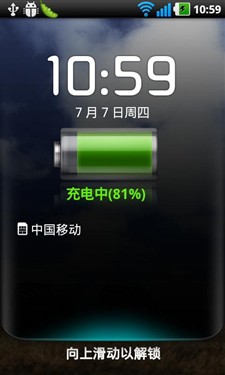 上面两张图片是LG P970的解锁界面,在待机状态下请按机身顶端的电源待机按键就会点亮屏幕,出现图一的屏幕画面。画面上会有解锁提示,点击屏幕向上滑动屏幕就会完成解锁操作。