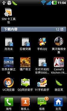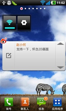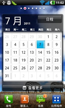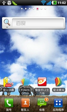 同时某些界面上还会有一些应用程序的快捷方式,性质和电脑桌面上的快捷方式类似。不论是哪个界面,界面的底部都有“拨号”、“联系人”、“短信”以及“应用程序”的快捷操作方式,点击就可以快速执行操作。