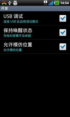 找到应用程序中的“设置”,点击进入,然后找到“应用程序”项目。点击进入,然后将“未知源”选项开启(点击一下,后面的小勾变量即可)。接着将点击下方的“开发”项目,将“UBS调试”选项开启。同时为了避免连接过程中的不必要麻烦最好将后面的“保持唤醒状态”和“允许模仿位置”两个选项也都开启。