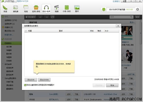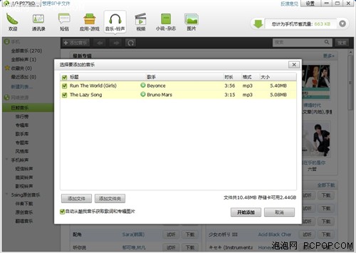 豌豆夹可以根据“音乐”、“图片”、“视频”、“电子书”等不同类型的文件进行导入操作。以添加音乐文件为例,首先点击“音乐.铃声”选项,然后选择“添加音乐”。接着选择添加文件,找到符合条件的文件或者文件夹,点击“开始添加”即可。