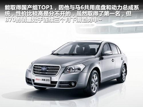 奔腾B70 销量:1979辆 官方指导价:13.18-18.88万 市场行情:老标降1.3万,部分送导航,新标降1万,颜色以银、黑色为主。