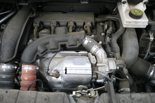 打开3008的引擎盖,我们能够看到这款车型的“心脏”——标致1.6L THP发动机,这款发动机采用燃油直喷和涡轮增压技术,最大功率达到115千瓦,峰值扭矩240牛米,动力性能充足。这款增压发动机是在标致1.6L发动机的基础上,标致公司与宝马联合开发的一款机型,3008的发动机与MINI S所采用的1.6T发动机相同,只是在调校上略有区别。