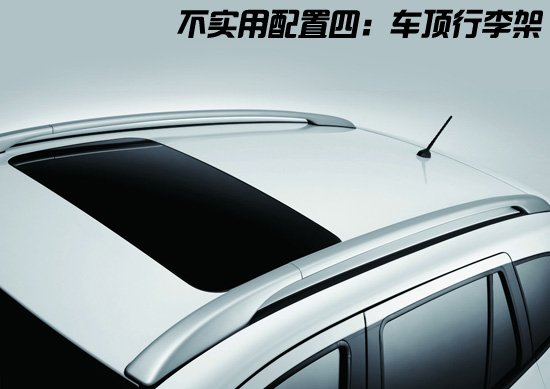 车顶行李架主要的作用是来放置体积过大的行李,比如自行车或折叠床等,这项配置在国外比较流行,而且在SUV和旅行车上多见此配置。不过国内的生活方式和国外差别比较大,长途休旅的人还是少数,而行李架的利用率则少之又少,往往高配车型才会有此配置,其装饰意义远大于实际用途,往往增加此类装饰需要花费数千元,大家购买时需要仔细斟酌。