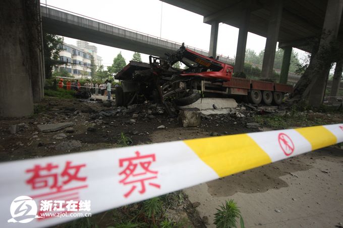 杭州钱江三桥(西兴大桥)引桥部分桥面坍塌