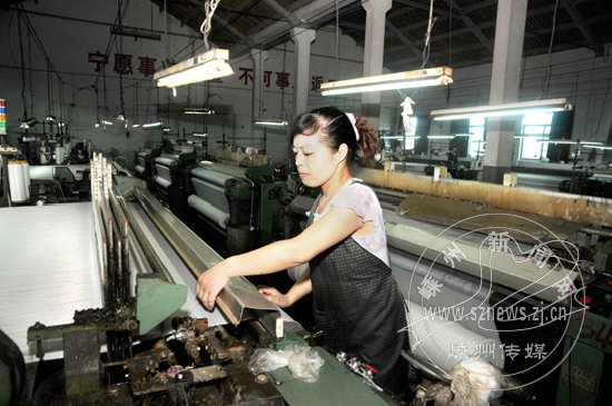 目前,公司又投资2700万元建造新厂房,将上马服装面料和家纺面料等生产线。图为公司生产线一角。