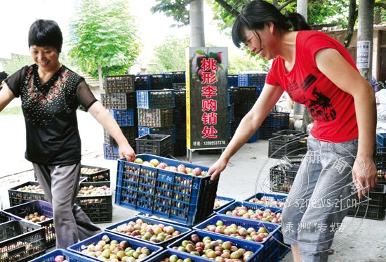 图为华堂村销售桃形李的现场。
