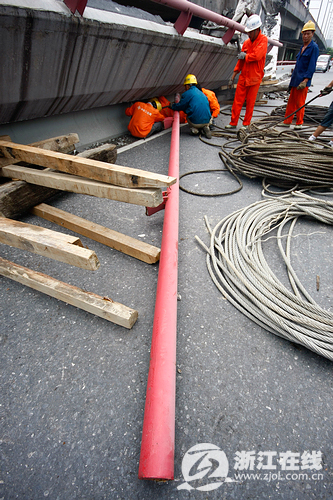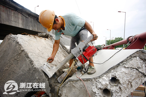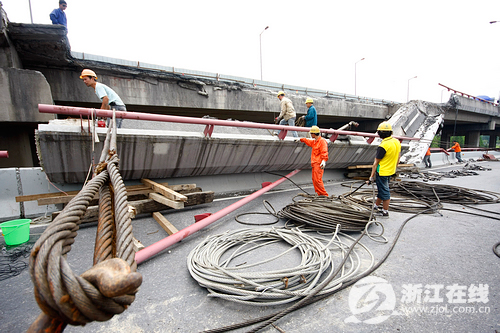 钱江三桥塌落现场开始清理 滨江下匝道口封闭