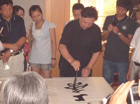 中国硬笔字书法家协会主席王正良在现场作书