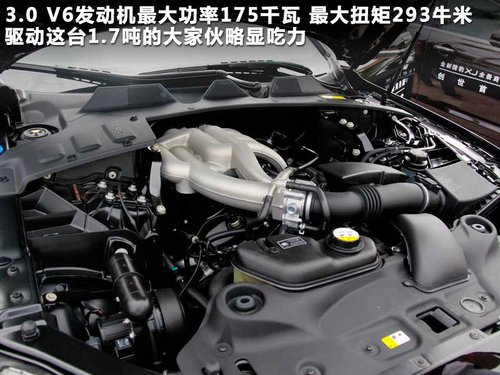 匹配6速手自一体变速器,急速踩下油门,车辆反应有些迟缓,但发动机的轰鸣声瞬间传入车内,而平缓驾驶时车内非常安静。切换到S挡运动模式下,除了延迟到4000转以上升挡之外,并没有体验到激情的驾驶感受,并且油门反应变化并不明显,这与5.0L V8车型区别较大。