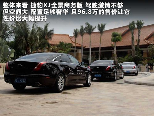 整体来看,捷豹XJ全景商务版依旧奢华,配置3.0L V6发动机是最大的改变之处,配置依旧相当齐备,但价格相比5.0L V8车型下调明显,性价比大幅提升,并且后排空间足够宽敞,相信这些能吸引不少消费者,唯一不足就是驾驶激情不够,但在城市驾驶舒适更加重要!