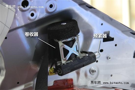 安全带织带和卷收器都属于整套安全带系统中的标准配置,以下我们将为您介绍的预紧器则属于选装配置。巨大的惯性虽然能激活前边提到的卷收器限位装置,但此时安全带已经被释放了一小部分,乘员身体也随之产生位移。虽然在肉眼看来这种位移可能是微不足道的,但在气囊起爆时却可能因为坐姿的变化而造成伤害。为了避免乘员身体位移,工程人员研发出了预紧器。