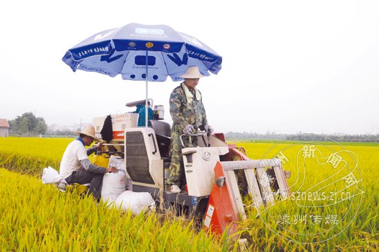 烈日炎炎,稻浪滚滚,连日来,我市各地农民正在忙着收割早稻。记者从市农技推广中心获悉,全市早稻种植面积为2.2万亩,估计平均亩产在400公斤左右,比去年增长20%以上,今年早稻丰收已成定局。图为记者昨日在市良种繁育场拍摄的早稻收割场面。