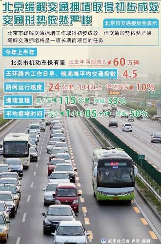 “在机动车保有量比去年同期增长60万辆的情况下,日均拥堵时间减少65分钟,降幅达50%。”7月20日,北京市交通委主任刘小明在北京市第十三届人大常委会第二十六次会议上报告了该市28项缓解交通拥堵综合措施实施半年来的总体情况。“一增一减”显现了北京市委市政府“建、管、限”组合拳治堵的初步成效。