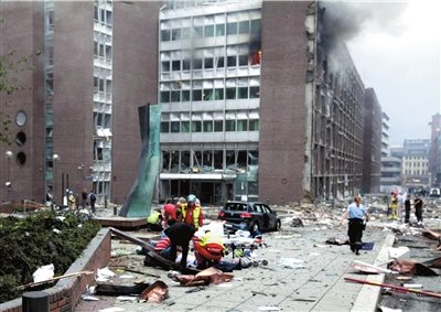 22日下午3时30分左右(北京时间21时30分),一起巨大爆炸震撼奥斯陆市中心,首相办公室所在的政府办公大楼严重受损。