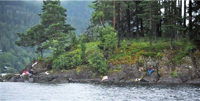 目击者安德烈·斯科耶通过电话告诉记者,他亲眼看到至少20名死者倒在水中。他说,他用自己的船帮助岛上一些人员撤离。