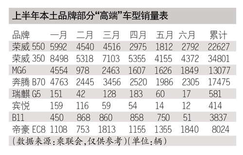 被称为高端本土品牌的荣威也扛不住了,主力车型荣威550从原来上市时月销量6000~7000辆下降到现在的2000~3000辆,荣威350也从原来近万辆下降到4000辆。而上海汽车乘用车上半年销量与去年同期相比,仅微增249辆,为80395辆。