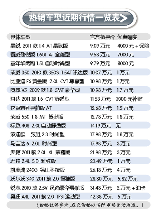 记者从市场获悉,除“日系三强”外,思铂睿、马自达6和蒙迪欧-致胜等车型一直保持较大让利幅度,而新上市的索纳塔、K5等也采取送礼包等方式“暗降”。目前市场上,天籁最高优惠达3.5万元,雅阁、凯美瑞最高优惠达4万元,其中凯美瑞多款车型优惠超过3万元,马自达6的最高让利幅度达到3万元的新高,而蒙迪欧致胜也有近2万元的让利。思铂睿则保持一贯的大幅让利,让利空间达3万元以上。