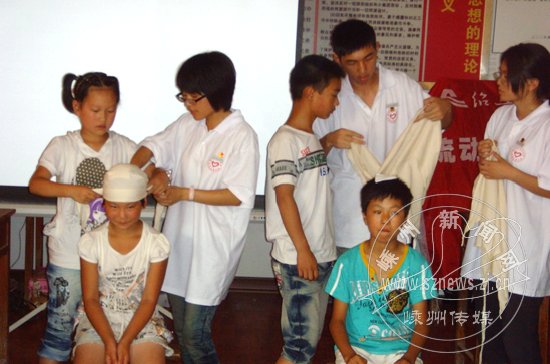 活动中,市消防大队的2名消防人员和来自绍兴文理学院的5名大学生志愿者给孩子们讲解了道路交通安全知识、消防安全知识、居家安全知识及各种情况受伤后的自救等知识。志愿者们通过图文并茂的讲解和唱歌、做游戏等深受孩子们欢迎的形式,让孩子们在娱乐中学习了安全自护知识,并通过让孩子们动手操作来掌握安全自护知识。活动中还分发安全自护宣传资料200余份。