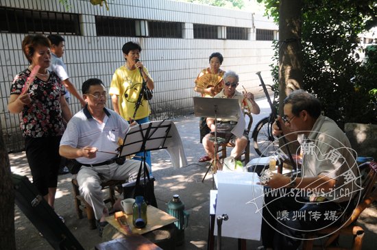 琴声悠扬,越音袅袅,在越剧故乡的大街小巷,随处可见市民自弹自唱的惬意情景,酷暑中的剡城由此多了一丝丝的清凉与悠然。