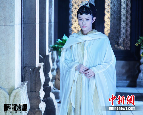 由孙俪、闫妮、郑爽领军的《画壁》仙女群,代表了仙境中三种不同身份的仙女。孙俪饰演的仙女芍药,是仙境掌门人——姑姑(闫妮)最信任的仙女总管。从服装上的设计来看,一身白衣长袍已经让她在仙女群中卓尔不凡。“我就是仙女中的班长。”孙俪如此描述自己的角色。据陈嘉上介绍,孙俪的角色其实是姑姑钦点的仙境下一任掌门人,十分御姐范儿。但也因为这种特殊身份,让她跟其他仙女非常疏远。“姑姑不让仙女们有情爱,不让我们接近男人。但其实芍药心里也是想追求爱情的。她只能忍耐,同时羡慕那些敢于追求真爱的仙女们。”孙俪说到。在邓超饰演的书生闯入仙境之后,仙女们都开始追求自己的爱情。为此服装指导吴宝玲还特别为孙俪设计了一袭绿色长裙。剧照中,一绿、一白两款造型,清丽的芍药对镜孤芳自赏,自述心事,完全又是一副小女生的样子。