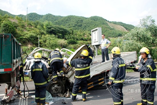 7月27日下午1时,甬金高速宁波往金华方向成功岭隧道入口处发生一起交通事故,一辆浙江牌照的白色轻卡货车跟一辆山东牌照的绿色半挂货车发生追尾,白色轻卡货车驾驶员当场死亡。