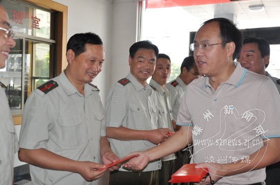 7月29日上午,市委副书记马志龙、市人大常委会副主任叶江仁、市人武部政委杜立新一行先后到市武警中队和宁波通信站嵊州传输站开展“八一”慰问,向武警和传输站官兵致以节日的问候,并送上慰问金。马志龙对武警官兵多年来在维护我市社会稳定方面作出的贡献表示感谢,同时希望大家一如既往地支持地方建设,保一方平安。